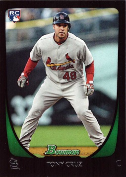 This is an official Tony Cruz Rookie Card, produced by Bowman Baseball in 2011.